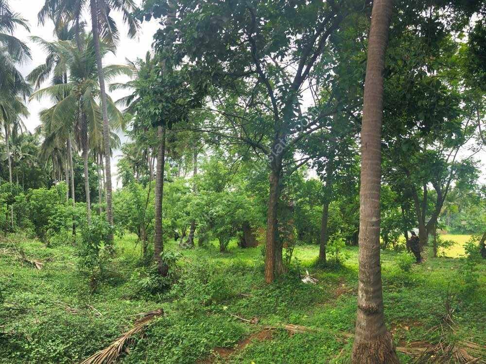This is a rectangular plot along the main road, features lush coconut trees.