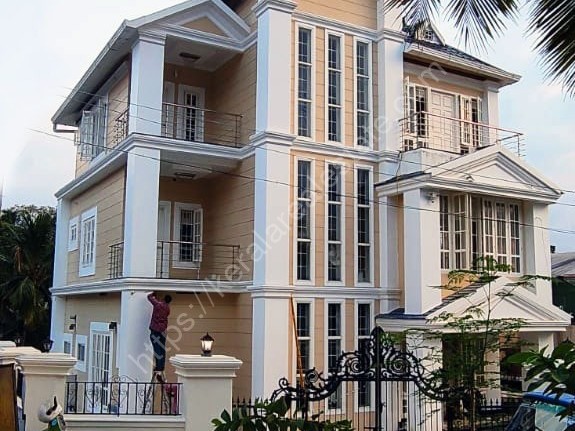 3750 sq ft Ultra Luxury American Villa in 10.5 cents of land at Karyavattom, 600 m close to Green Field Stadium. Available home elevator, 3 floors, 4 spacious bedrooms, walk in closets, all real teak wood dressing cabinets and kitchen cabinets, false ceiling, 2 inch horizontal blinds, teak computer table and office room. There are fully furnished teak kitchen with kitchen hood, Faber cooking range, LG dishwasher, imported delta Faucet from USA, Bosch microwave oven, LG double door top of the line refrigerator and Samsung washing machine top of the line. This house having 4 full bathrooms with each bedrooms, 1 guest bathroom, 1 driver maid bathroom, Italian marble style flooring. All doors and windows have moldings and American style wains coating all over the house. Highest quality electrical wiring , bathrooms comes with water heaters, and glass partition, concealed flush, over head tank with pressure pump, underground 6000 ltrs water tank, 6 car parking, 2 car covered parking, lawn and garden having automatic sprinkler system imported from USA. All rooms are fully air -conditioned, around 8 ac in property, options for solar panels and solar water heater. Genuine customers only.